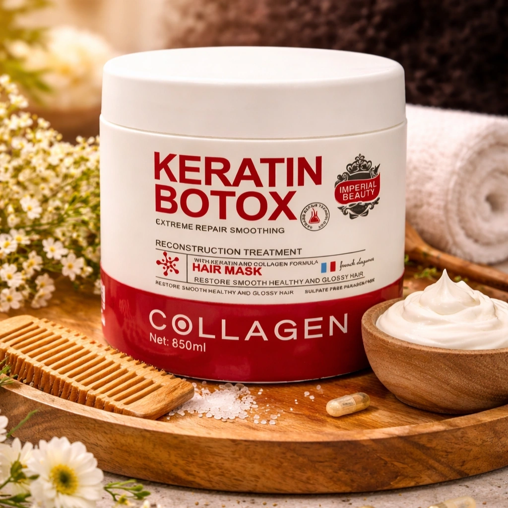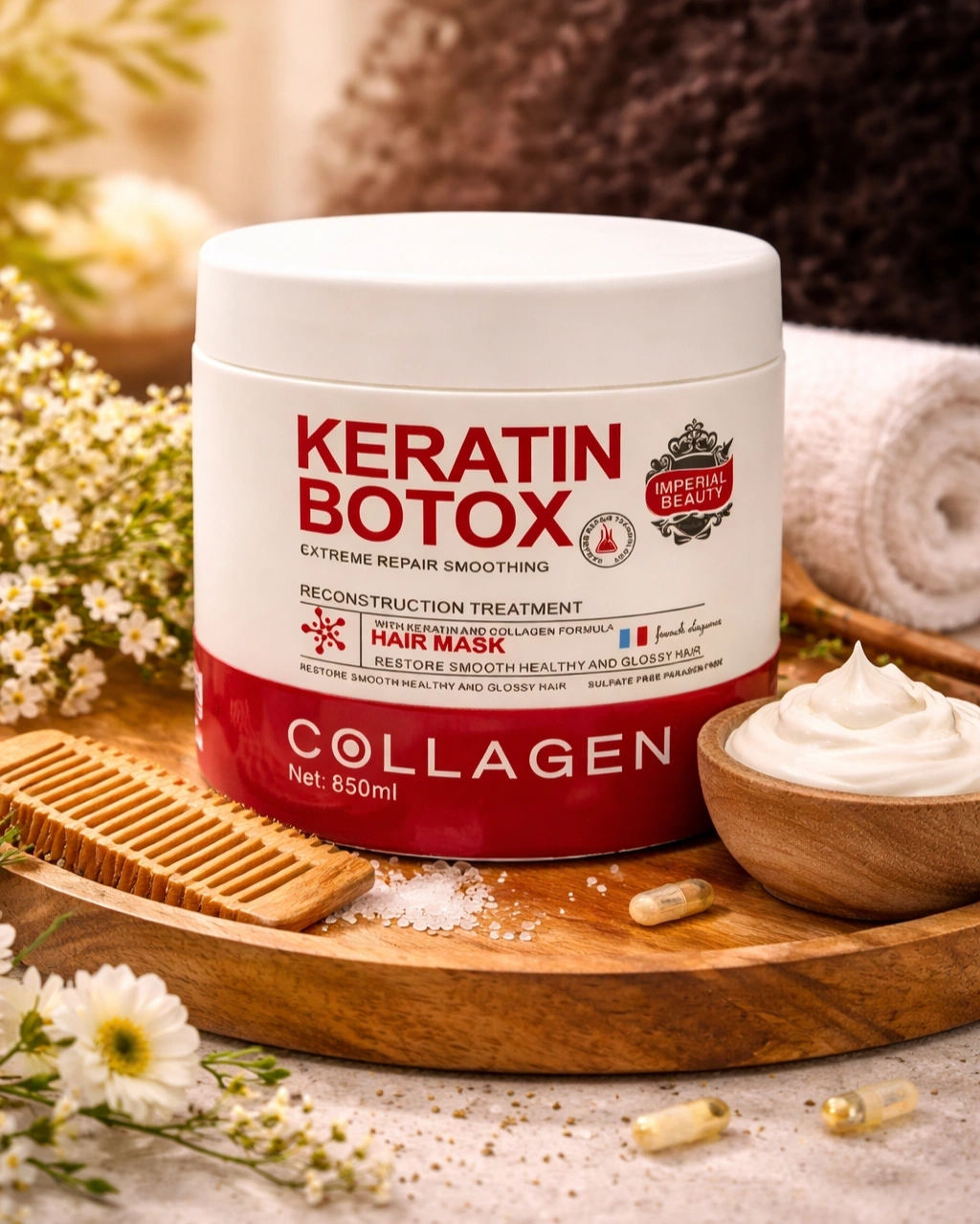 Hair mask for smooth silky and shiny hair, with keratin botox infused with nano technology and natural ingredients, materials sourced from france, and suitable for dry and damaged hair, for home and salon use, keratin for straight hair and botox for damaged hair