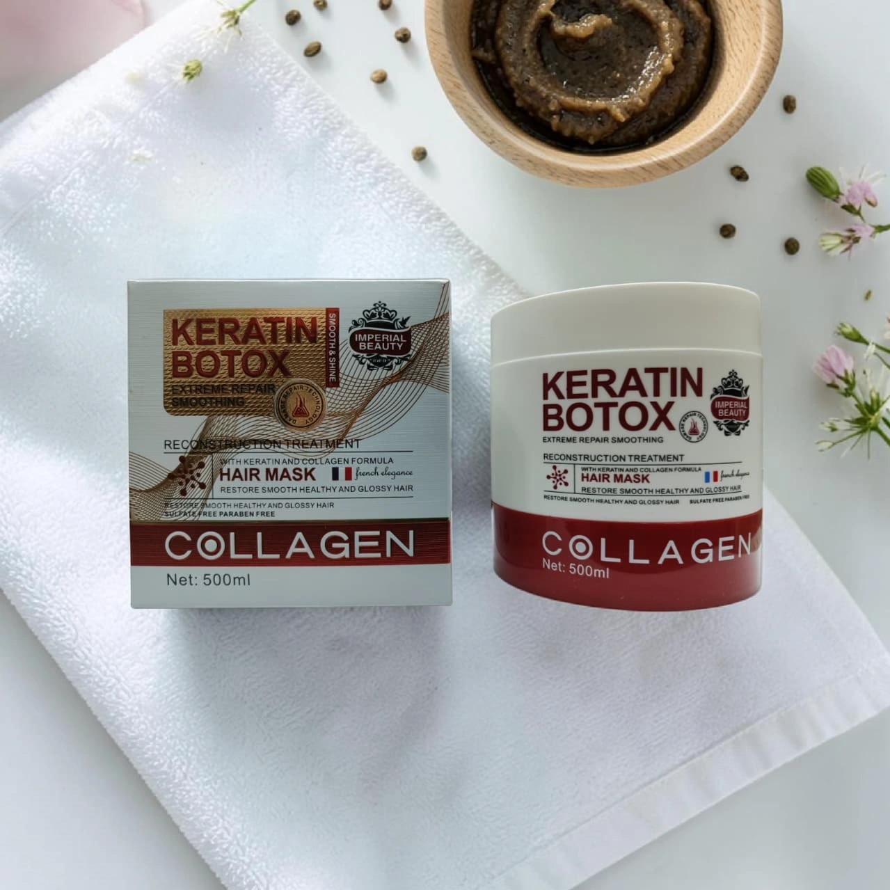 Hair mask for smooth silky and shiny hair, with keratin botox infused with nano technology and natural ingredients, materials sourced from france, and suitable for dry and damaged hair, for home and salon use, keratin for straight hair and botox for damaged hair